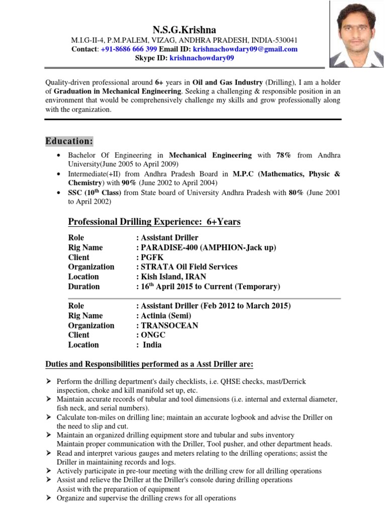 Asst Driller Resume Pdf Oil Well Pump